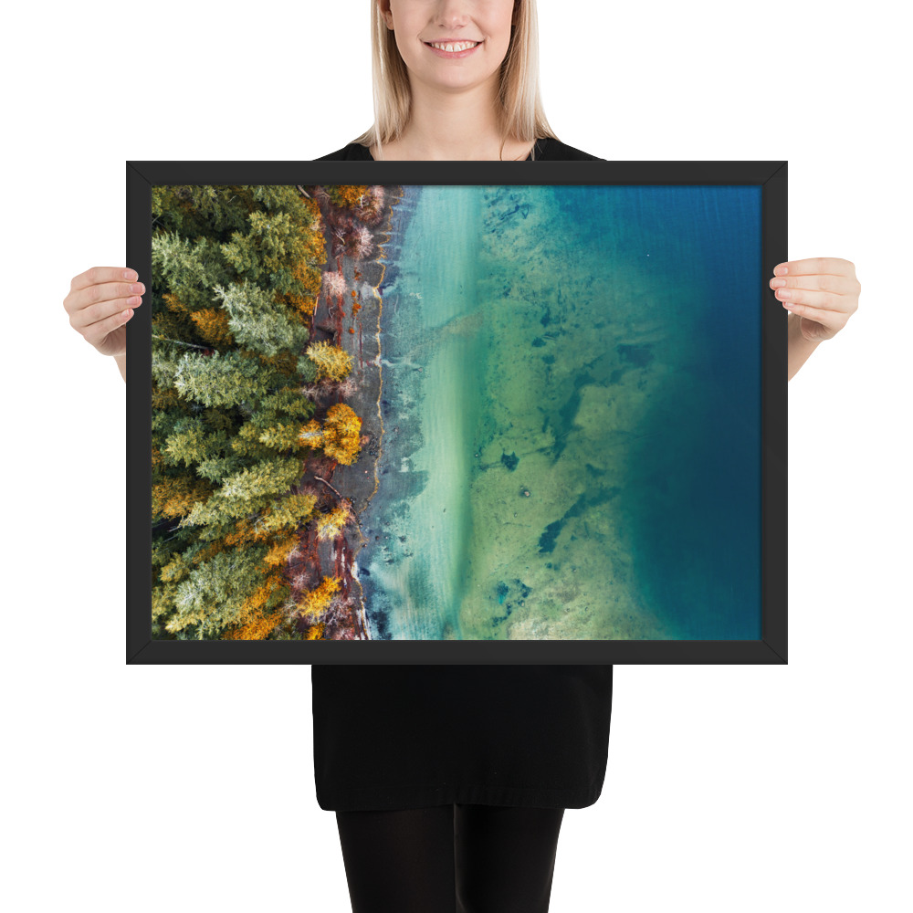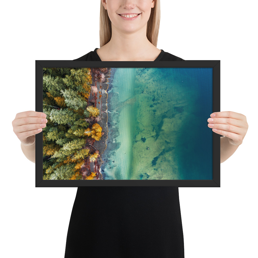 A one-of-a-kind photo of Cameron Lake outside of Parksville, BC taken by a drone just as summer changed to fall on a very calm day.